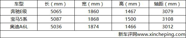考虑到乘坐舒适性和关乎面子的气场,这个级别的车自然是越大越讨喜。所以大家都在纷纷加长,因此越新的车在车身尺寸越占优势,目前ABB的排序是:除了车身宽度,最新的宝马5系Li的车身尺寸全面占优,其次就是刚换代不久的奔驰E级,尺寸最小的是处于产品中后期的奥迪A6L。不过,我们也一直强调,车身尺寸如果不能转化为有效的乘坐、储物空间,那就是在耍流氓。