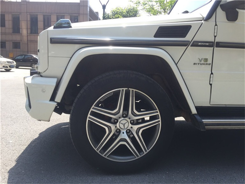 奔驰G63 AMG是基于最新的2013款改款奔驰G级打造的车型。相比普通版来说,奔驰G63 AMG配备了大尺寸的前保险杠,全套车身动力学套件使两款车拥有了极为动感霸气的效果。奔驰G63 AMG在动力方面也表现十分出色,新车搭载5.5L V8双涡轮增压发动机,最大功率544马力,最大扭矩760N·m。据官方信息显示该车从0-100km/h的加速时间为5.4秒,最大时速可以达到210km/h。奔驰G级AMG完美的兼顾了动力、舒适性和越野性能,而对应这款车的售价也十分高昂。