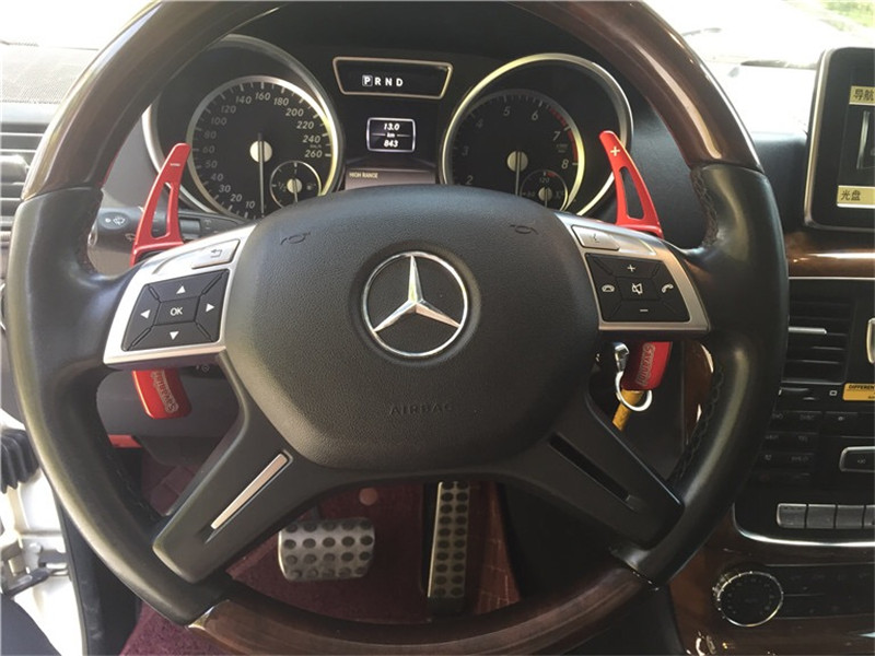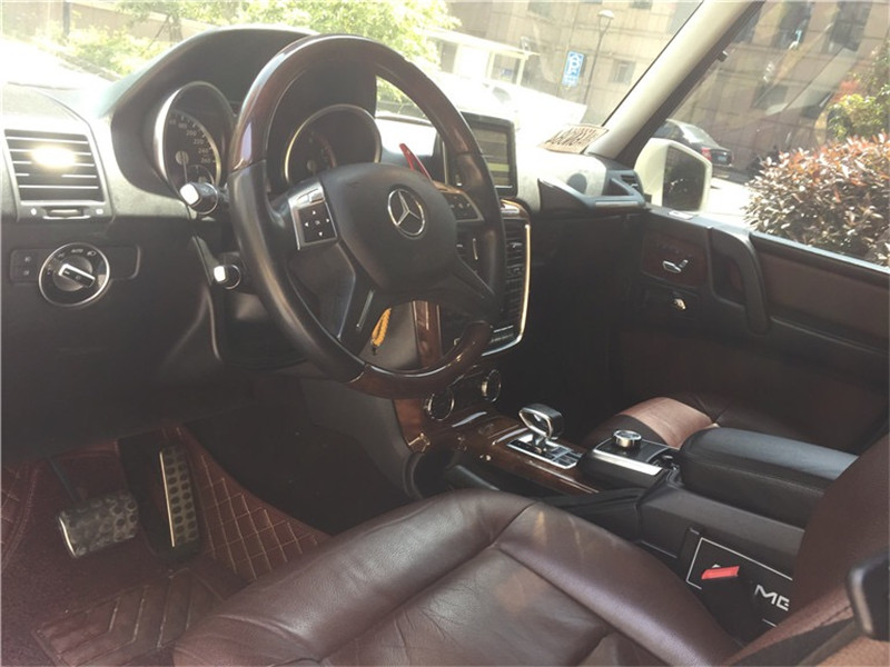奔驰G 63 AMG基于最新的2013款改款奔驰G级车打造。相比普通版G级车,奔驰G 63 AMG配备了大尺寸的前保险杠,配合全套车身动力学套件和大尺寸的AMG专属合金轮毂,使得G 63看起来极为霸气。同时,车身两侧镀铬双排气管也让奔驰G 63 AMG显得更加与众不同。G 63 AMG的内饰布局与普通版车型一致,只是变速杆的造型略有差异。G 63 AMG中控台多处均采用碳纤维材料覆盖。同时为了彰显其强劲的动力表现,G 63 AMG的仪表指针被喷涂为红色。